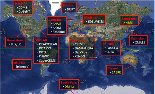 圖4 全世界暗物質地下實驗分布(暗物質直接探測)
