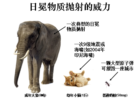 萬物生長靠太陽,地球地表的天氣與太陽有關系,而空間天氣的變化也與太陽有關。太陽上有一種日冕物質拋射的現象,太陽把一團物質拋射出來,形成高速的太陽風,它拋射的能量是地球上原子彈威力的1600萬倍,一顆原子彈可以摧毀一座城市,足見威力。 而與太陽拋射的能量相比,差距太大了。