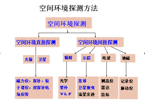 空間環境的探測有直接探測和間接探測。我們有空間飛行器和衛星,可直接在空間中探測各種數據,把測量儀器放到衛星上,當衛星經過時,進行測量。另一種是間接測量,利用輻射的粒子,通過光學和紫外研究其攜帶的信息,把高空的狀態和參量提取出來。或者利用無線電波信號發射如雷達似的,通過電磁特性進行遙感,把空間狀態提取出來。再有就是通過地磁觀測,地面地磁觀測的主磁場是地球內部的,而空間的帶電粒子會影響到磁場的變化可以通過反演研究空間的一些參量。